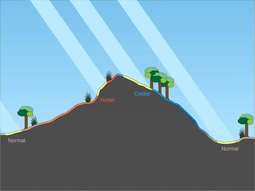É importante lembrar que também existem outras influências topográficas que podem desempenhar um grande papel na temperatura. Por exemplo, a drenagem de ar frio em um cânion ou os fundos de vales onde a temperatura pode ser mais fria do que em uma elevação mais alta. É importante não assumir sempre que uma elevação mais alta significa que está mais frio. Todos os outros fatores também precisam ser examinados.