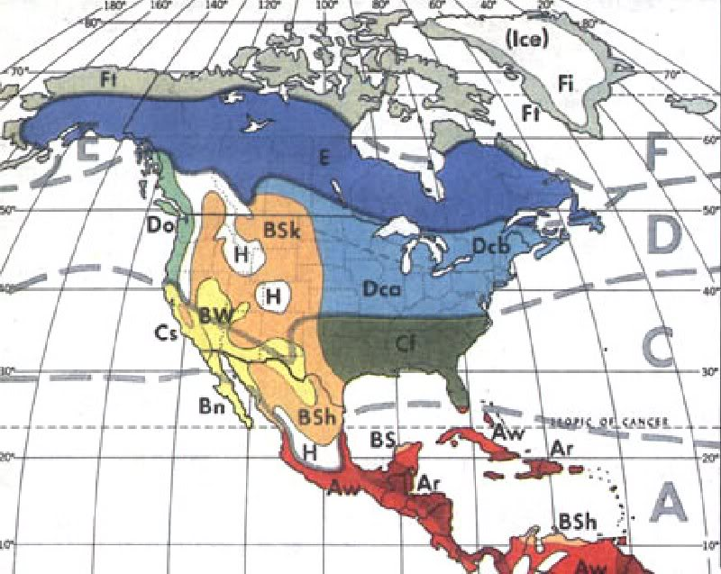 Qual é o código de duas letras de Koppen-Trewartha e o que cada letra representa? Consulte o mapa de classificação de Trewartha para verificar se há diferenças entre seu local e o potencial análogo. Se o mapa indicar que eles estão em classes climáticas diferentes, retorne ao início e procure outro local potencial.